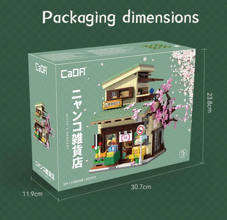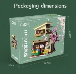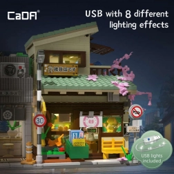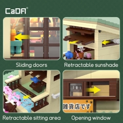 Odkryj urok japońskiej architektury z zestawem CaDA, który z 921 elementów tworzy szczegółowy modułowy sklep z możliwością zajrzenia do wnętrza. Dołączono oświetlenie LED z 8 efektami, ruchome elementy (drzwi przesuwne, wysuwana markiza, otwierane okno) oraz bogate dekoracje, w tym sakura, staw z koi, szyldy i figurka maneki-neko.