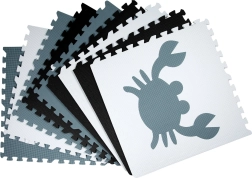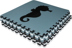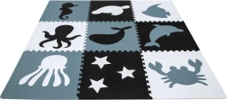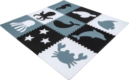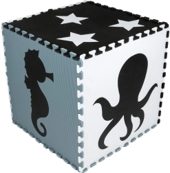 Neutralne, spokojne kolory nie rozpraszają dzieci podczas zabawy i łatwo wpasują się w każde wnętrze – pokój dziecięcy, bawialnię czy przedszkole. Wyjmowane środkowe elementy z kształtami (konik morski, żółw, ryba, meduza, wieloryb, ośmiornica, delfin, gwiazdy i krab) wspierają rozwój motoryki i naukę o zwierzętach. Elementy można rozszerzać (w ramach tego samego modelu) i składać w sześcian lub inne formy 3D.