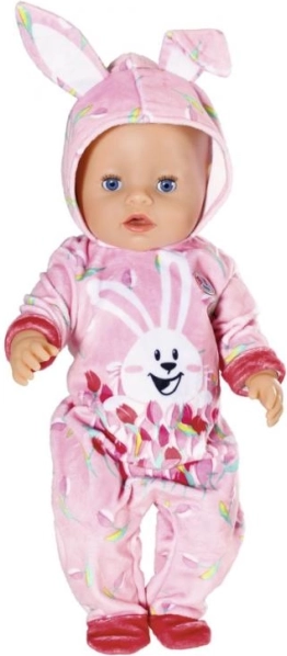 Wielkanocne jajeczko BABY born to doskonała niespodzianka dla wszystkich małych miłośników lalek. W różowym jajeczku ukryty jest uroczy kombinezon, ozdobiony nadrukiem króliczka Benna i wiosennych tulipanów. Kaptur ma wesołe królicze uszka, które nadają ubranku zabawny wygląd.