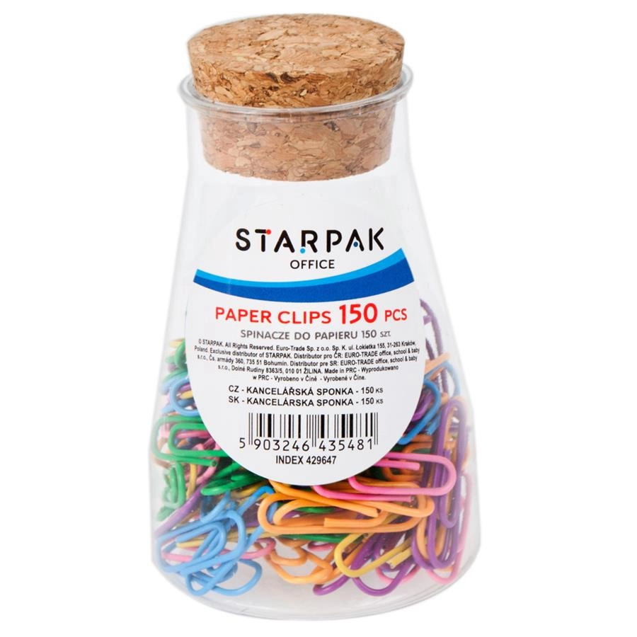 Praktyczny zestaw kolorowych spinaczy biurowych do przejrzystej organizacji dokumentów. Opakowanie zawiera 150 sztuk w stylowym słoiku z korkowym korkiem. Idealne do biura, szkoły i domu, trwałe i wielokrotnego użytku.