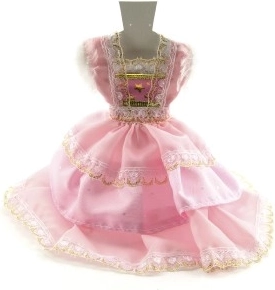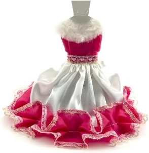 Zawartość opakowania: sukienki w stylowej torebce o wymiarach 27x30 cm. Idealny prezent dla każdej małej księżniczki, która lubi tworzyć i ubierać swoją lalkę.