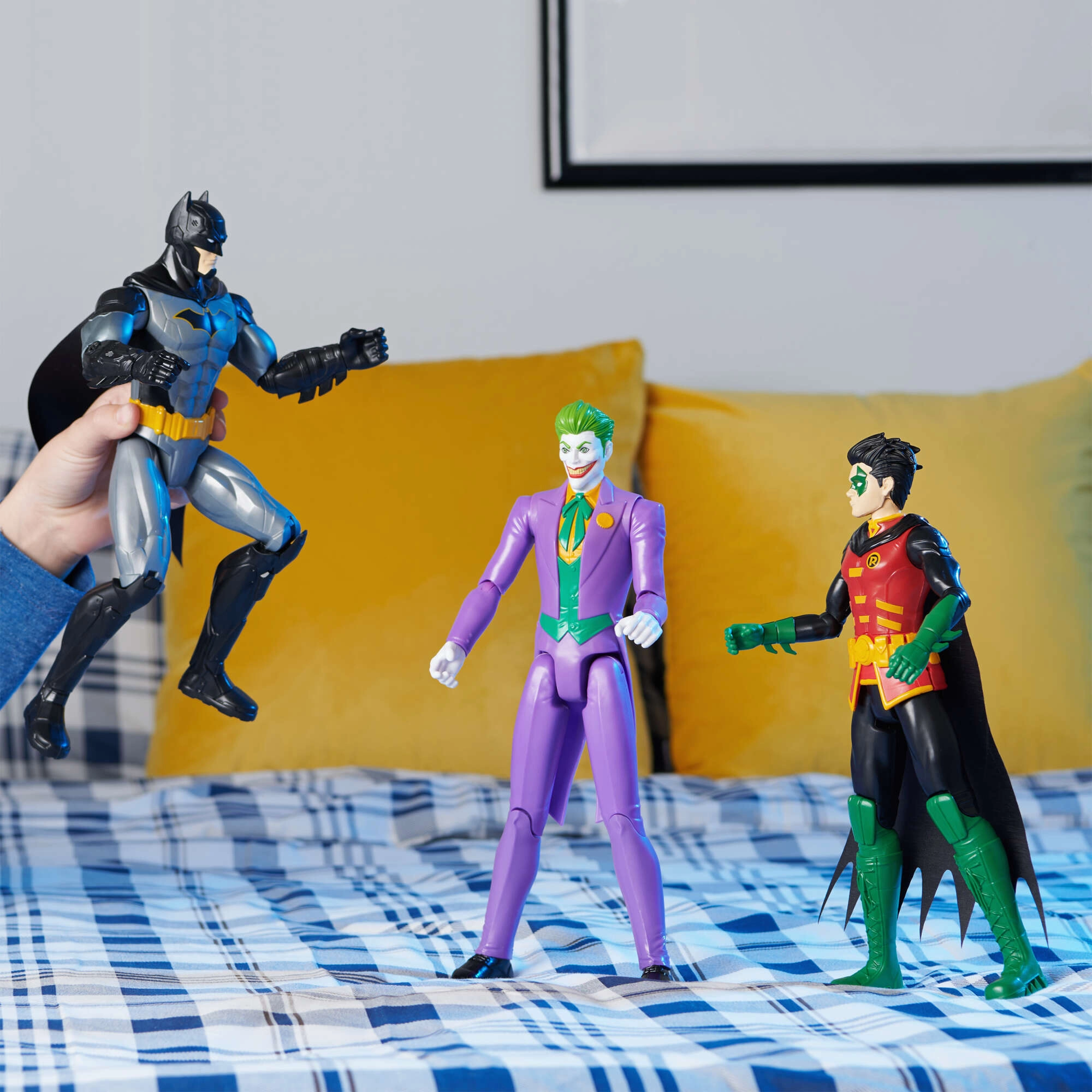 Figurki BATMAN, ROBIN i JOKER mają ruchomą głowę, ręce i nogi, dzięki czemu łatwo ustawisz je w dynamicznych bojowych i kolekcjonerskich pozach.