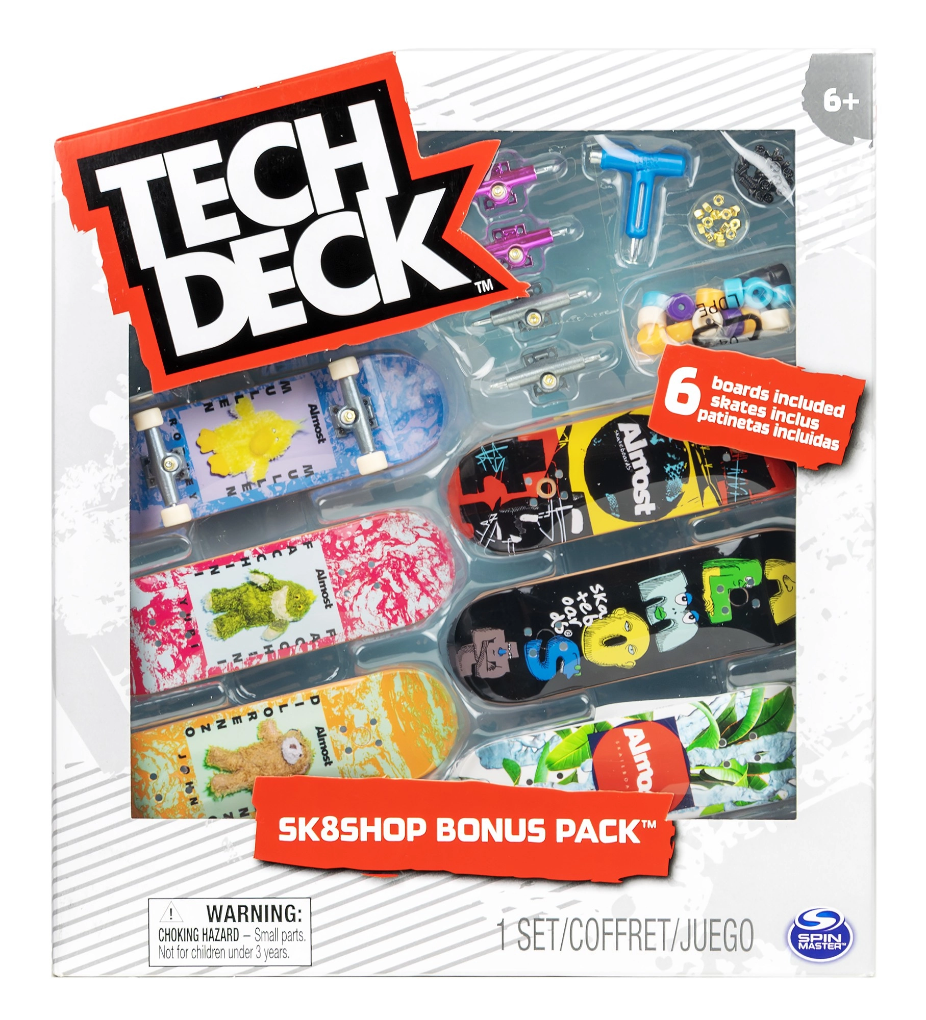 Odkryj świat fingerboardingu z zestawem Tech Deck Bonus Pack – kompletnym pakietem do złożenia własnych mini deskorolek. W środku znajdziesz 1 gotowy fingerboard oraz 5 dodatkowych desek z gripem, dzięki czemu możesz od razu zacząć trenować triki i rozwijać koordynację. Świetny wybór dla fanów marek takich jak ALMOST i idealny dla dzieci od 6 lat.
