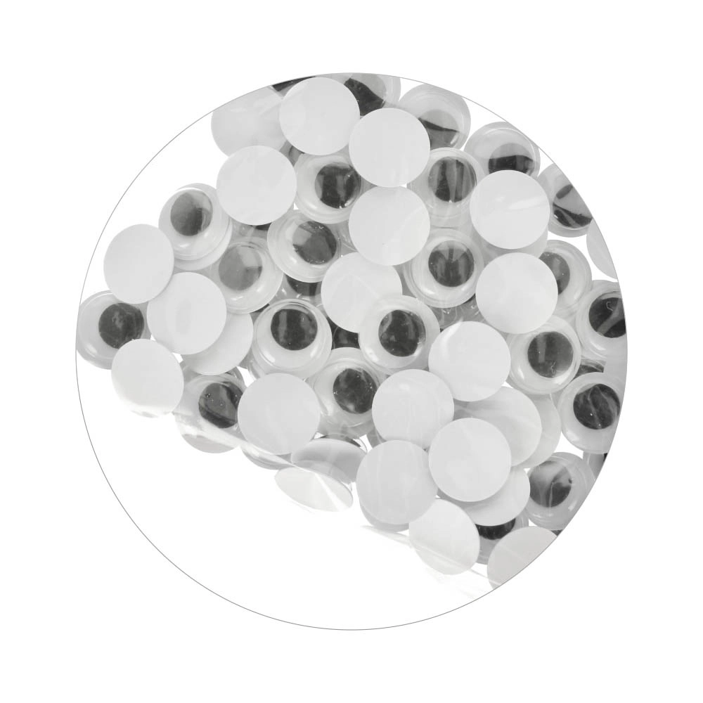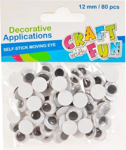 Twórz oryginalne dekoracje i zabawne projekty z tymi ruchomymi samoprzylepnymi oczami. Opakowanie zawiera 80 sztuk oczu z ruchomymi czarnymi źrenicami, idealnych do tworzenia, scrapbookingu i innych prac ręcznych. Odpowiednie dla dzieci od 3 lat.