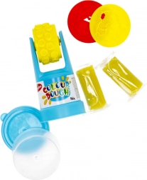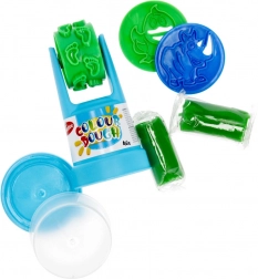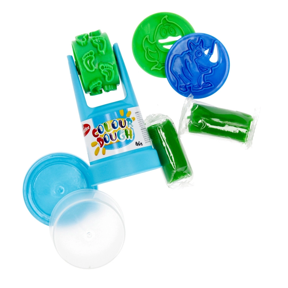 - Zawartość zestawu: wałeczek z reliefem / ekstruder, stempelki i foremki, masa plastyczna