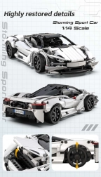 Szczegółowa biała karoseria z czarnymi akcentami, otwierana maska i gumowe koła dla pewnego kontaktu z podłożem. Świetny wygląd i funkcjonalność.