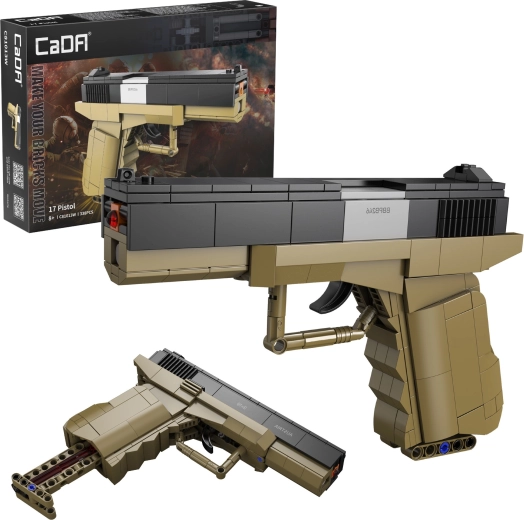 Zbuduj realistyczny model pistoletu 17 marki CADA z 338 elementami i ciesz się dynamiczną zabawą. Model oferuje funkcjonalny mechanizm z wyjmowanym magazynkiem oraz możliwością wystrzeliwania dołączonych pocisków. Klocki są kompatybilne z innymi markami.