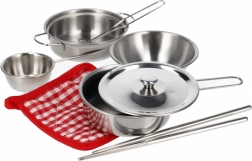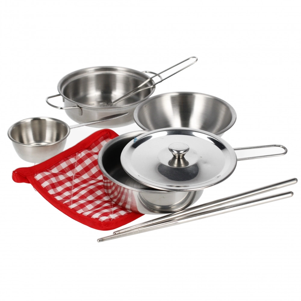 - 1× garnek z rączką, 2× garnek, 1× pokrywka, 1× miska, 1× chochla, 1× ściereczka, 1× zestaw pałeczek