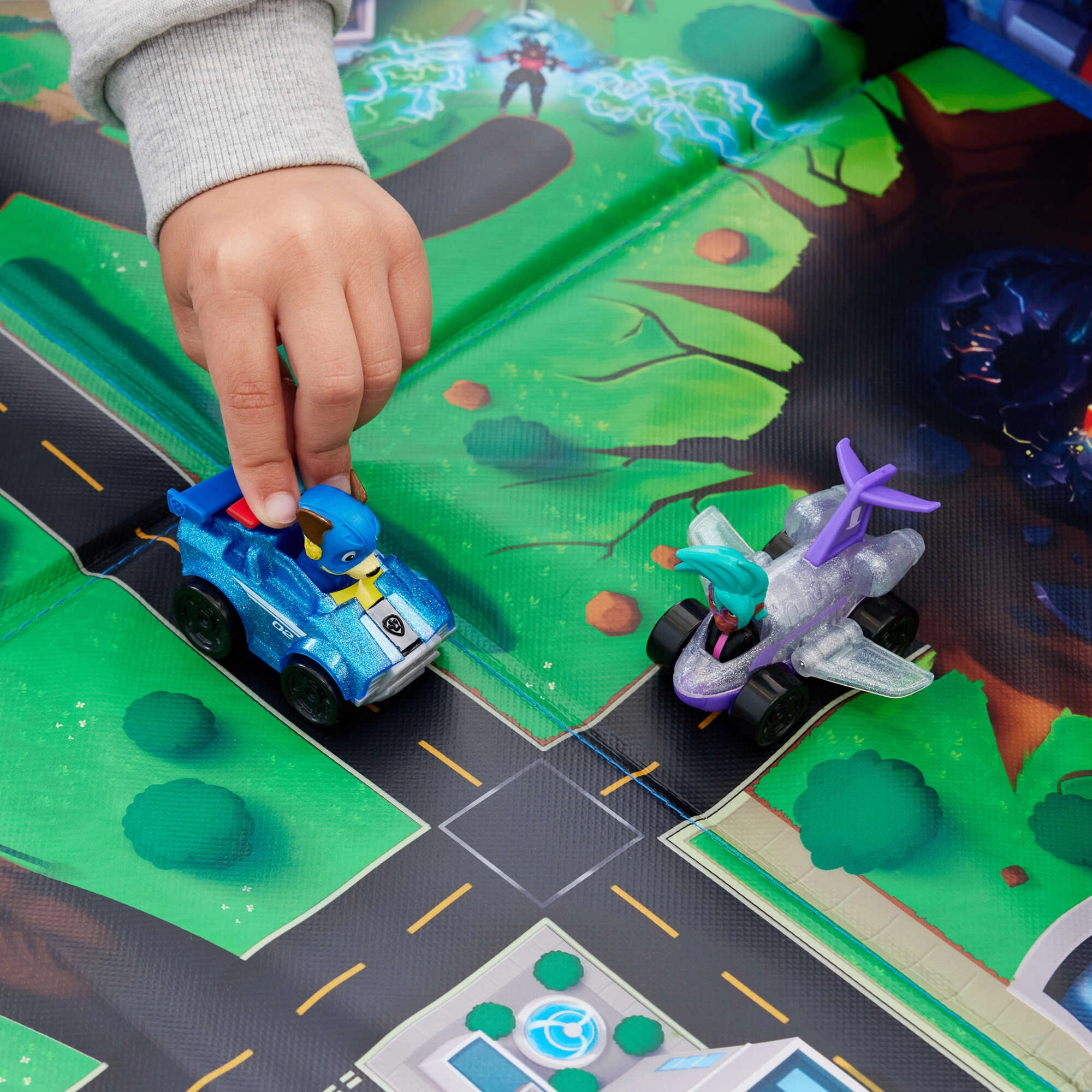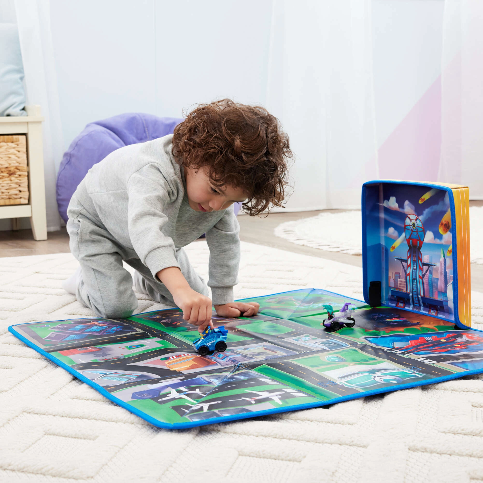 Ta składana mata inspirowana filmem PAW Patrol: The Mighty Movie przenosi do dziecięcego pokoju całe Miasto Przygód – ulice, skrzyżowania, most i lotnisko. Powierzchnia jest miękka, kolorowa i zachęca do twórczej zabawy pojazdami oraz figurkami ulubionych bohaterów.