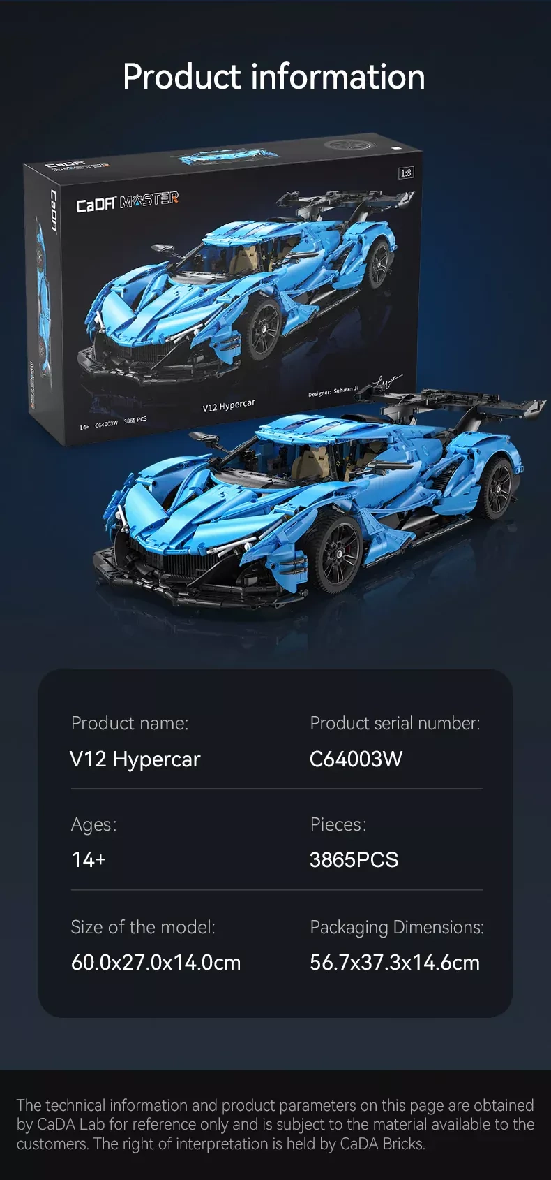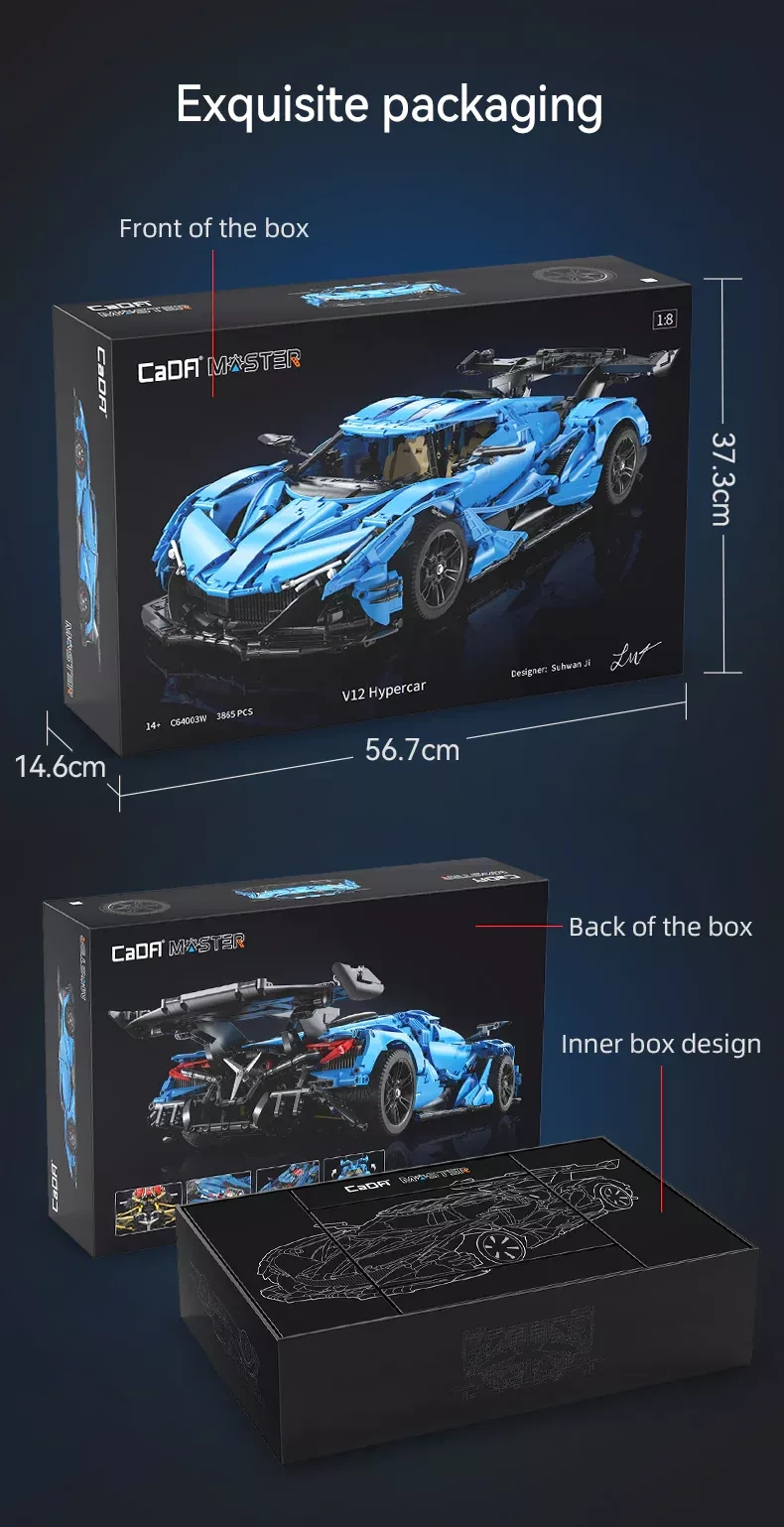 Ten wielkoformatowy model hipersamochodu V12 z serii CADA Master zachwyci wszystkich miłośników technicznych zestawów. Podczas budowy poznasz przemyślane elementy mechaniczne, które potęgują realizm: od działającego układu kierowniczego, przez otwierane drzwi, po autentyczne detale kokpitu. Dzięki eleganckiej niebieskiej karoserii stanie się wyrazistą ozdobą każdej kolekcji.