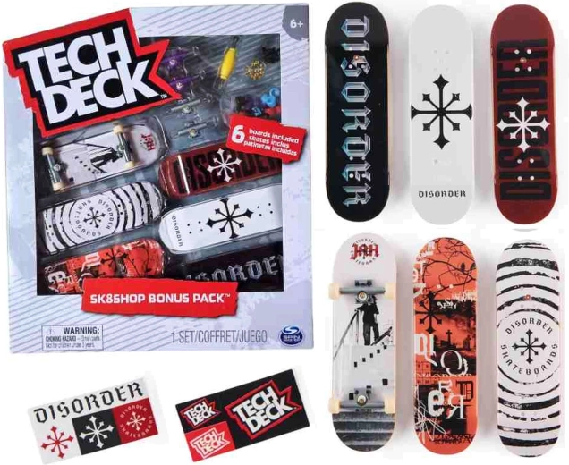 Odkryj legendarny fingerboard TECH DECK w bogatym zestawie Sk8Shop 6 Pack Disorder z akcesoriami. Zbuduj własne mini deskorolki od podstaw, trenuj triki palcami i poprawiaj koordynację. Idealny dla początkujących i kolekcjonerów – godziny zabawy i nieskończone możliwości kombinacji.