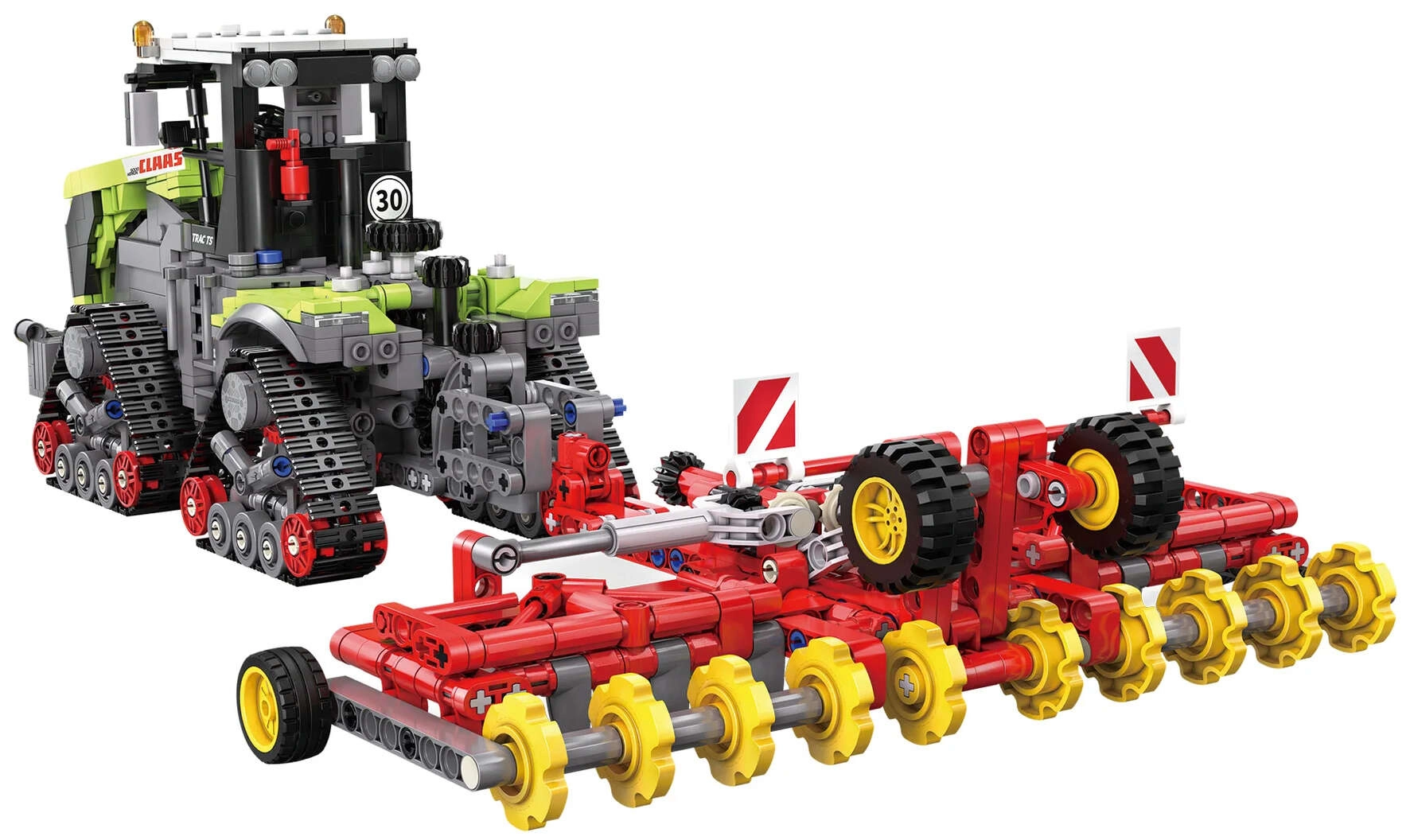 Ten imponujący model oddaje realistyczne wykonanie traktora CLAAS z trójkątnym układem gąsienic, przemyślanymi funkcjami mechanicznymi oraz bogatymi detalami zewnętrza i wnętrza. Dzięki przejrzystej instrukcji budowę docenią także młodsi konstruktorzy pod nadzorem dorosłych.