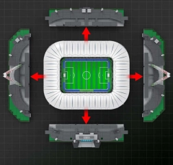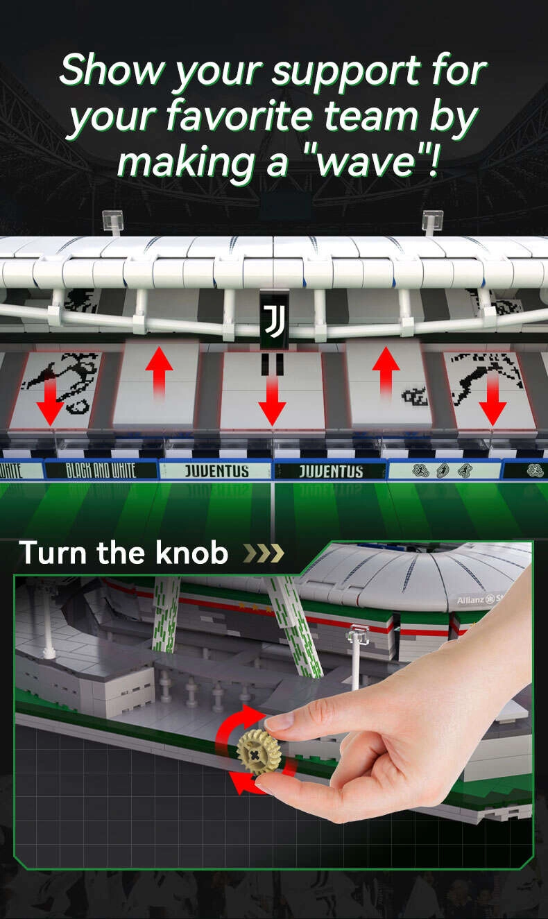 Model podzielono na sześć modułów (boisko, cztery trybuny i dach), dzięki czemu łatwo go rozłożysz i obejrzysz wnętrze. Unikalna funkcja „fali” pozwala przy pomocy pokrętła poruszać siedzeniami w górę i w dół – zupełnie jak na prawdziwym stadionie. Dzięki przemyślanemu projektowi i solidnej konstrukcji jest idealny do budowania, ekspozycji i dla kolekcjonerów.