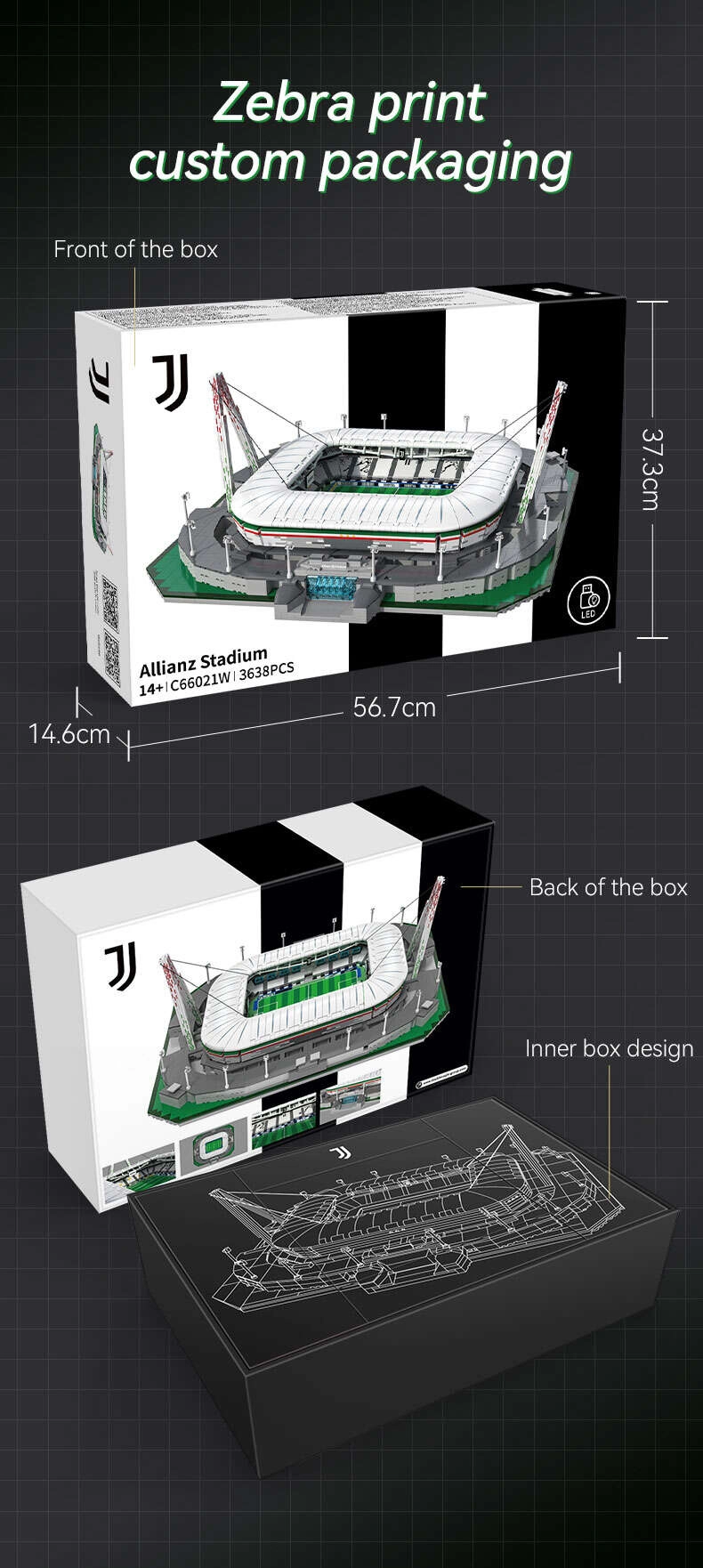 Zintegrowany moduł LED JT8007 oferuje osiem efektów świetlnych, które podkreślają architekturę stadionu i zamieniają model w designerską dominantę.