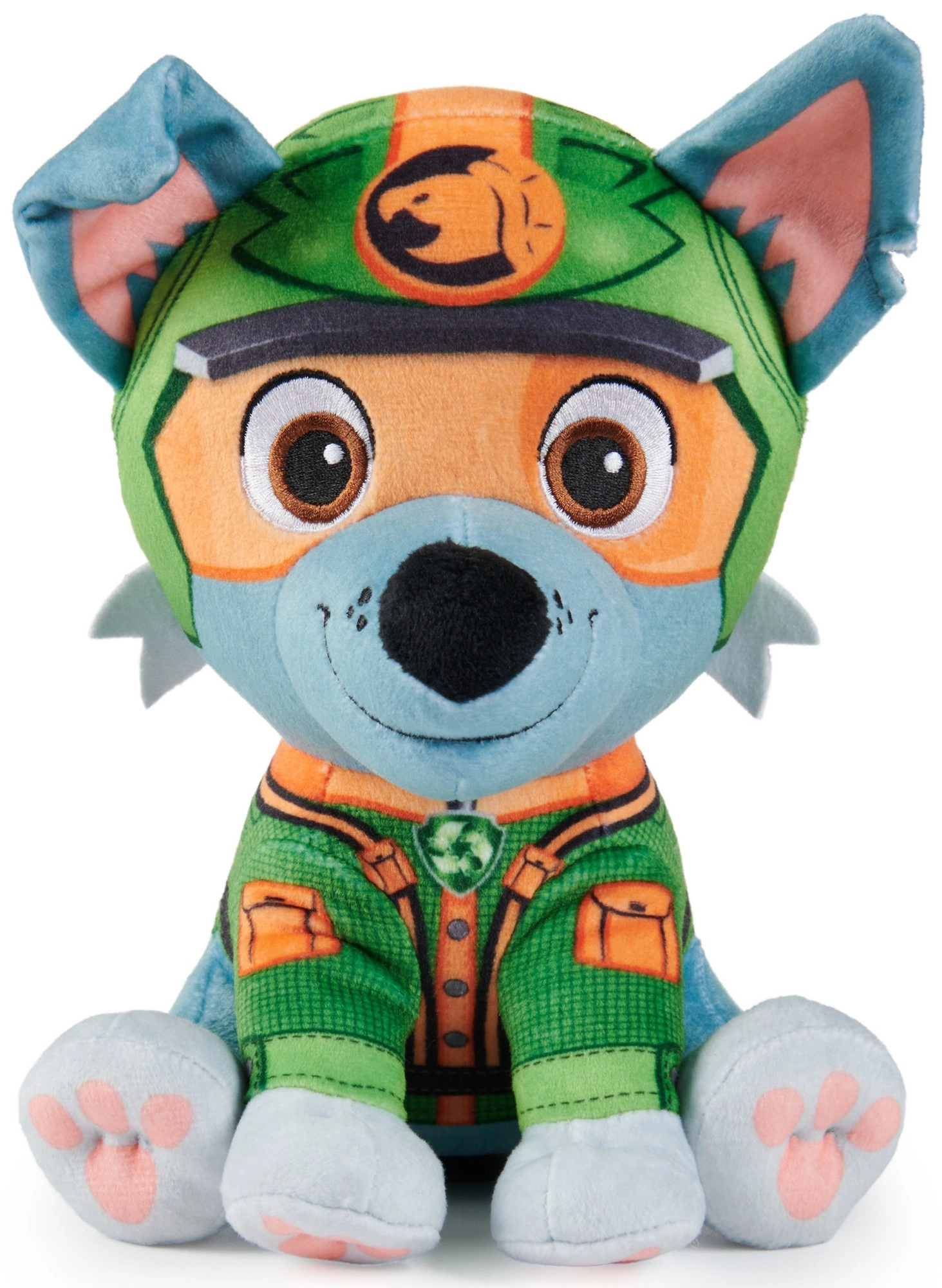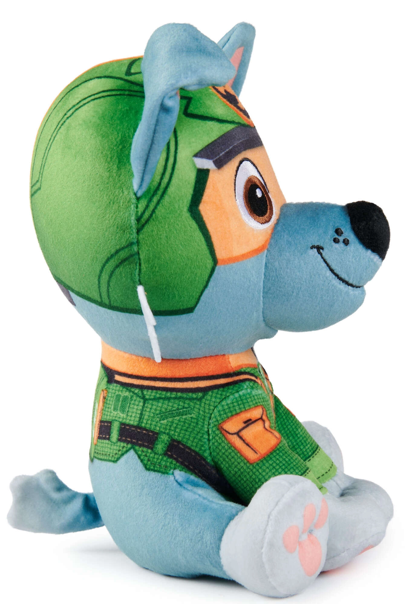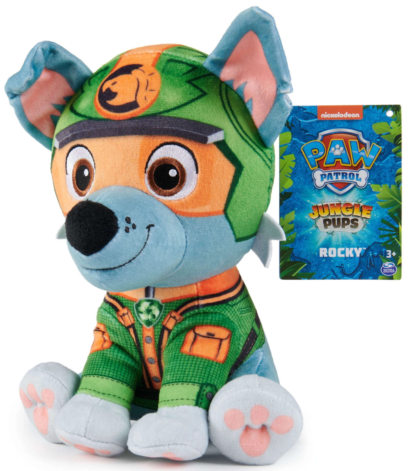 Przynieś do domu ulubionego bohatera z serialu PAW PATROL – pluszowego pieska Rocky’ego w zielonym stroju jungle. Dzięki miękkiemu wypełnieniu, przyjemnej powierzchni i dopracowanemu ubranku idealnie nadaje się do przytulania i zabawy w ciągu dnia oraz przed snem.