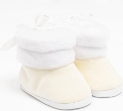 Buciki mają szerokie wnętrze, aby palce mogły swobodnie pracować i wzmacniać się naturalnym ruchem. Lekka, cienka podeszwa z materiału syntetycznego (PVC bez BPA) jest delikatna dla wrażliwych stópek i wspiera prawidłowy rozwój podczas noszenia w wózku lub w domu.