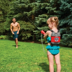Pistolet wodny w plecaku strzela na odległość do 9 m, a pojemność 1 litra zapewnia długą zabawę bez częstego dolewania. Świetny do letnich zabaw w ogrodzie, podlewania roślin i dziecięcych zabaw w strażaków. Wytrzymałe wykonanie przeznaczone jest dla dzieci od 3 lat.