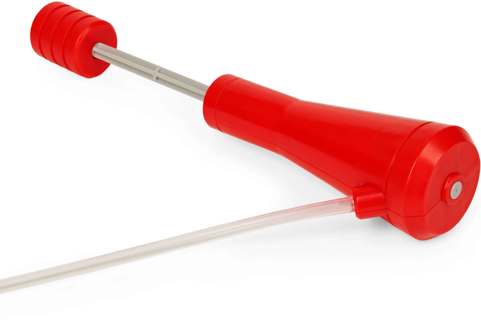 Ręczna pompka wytwarza stabilny strumień wody o zasięgu do 9 m – idealny do zabaw na świeżym powietrzu, zawodów i strażackich misji.
