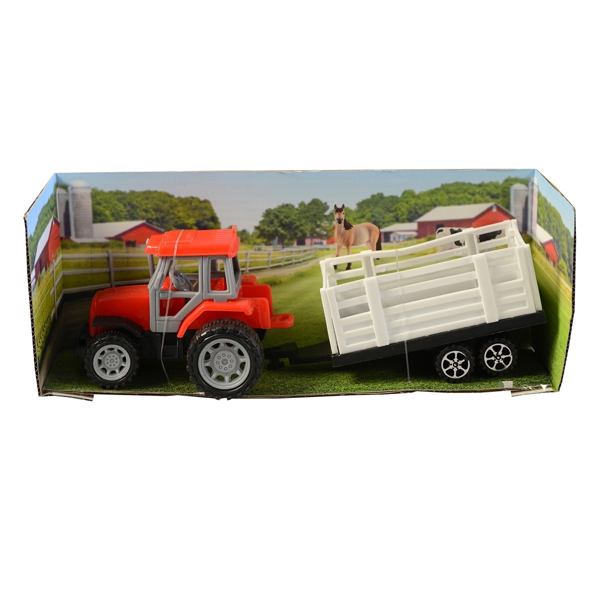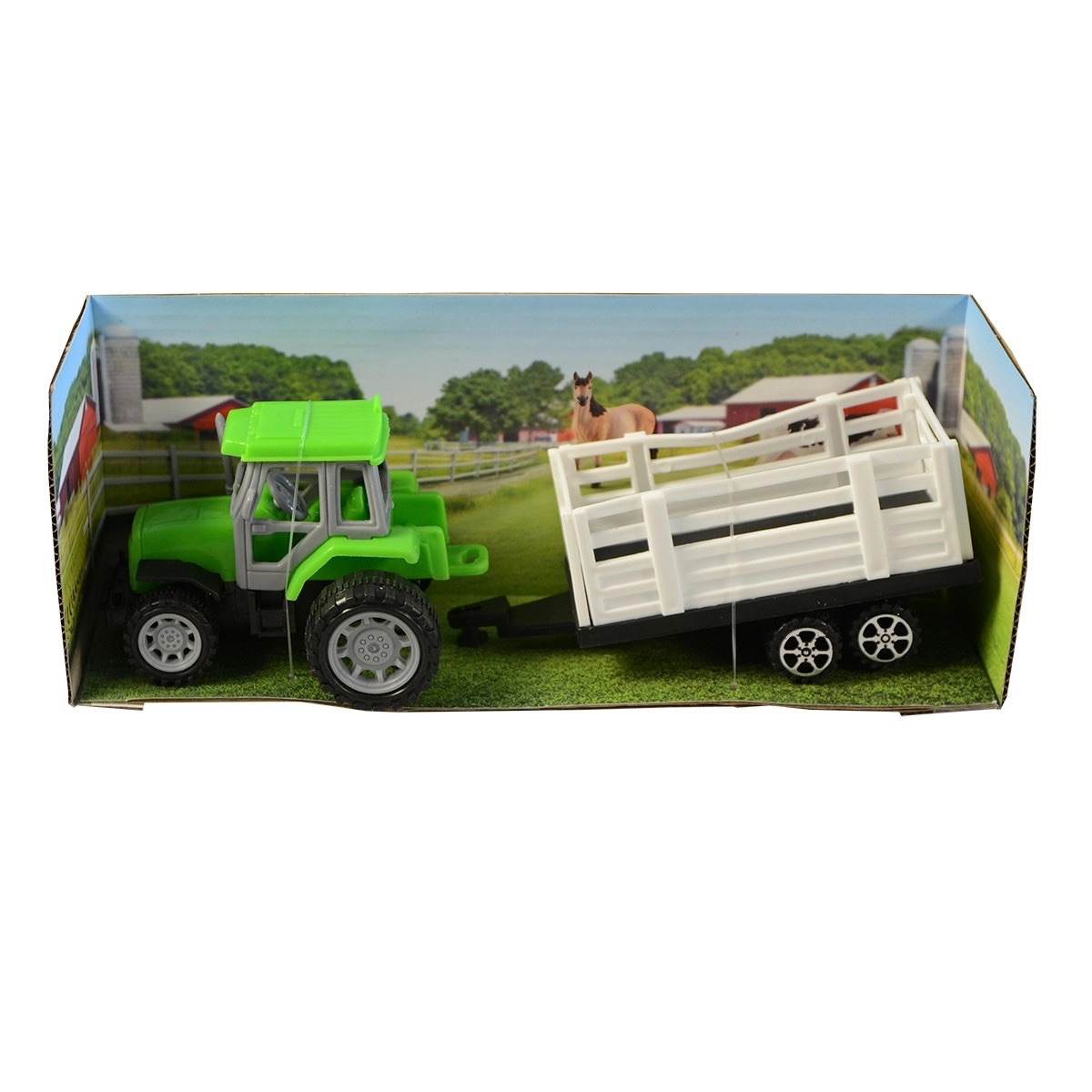 Odkryj realistyczny traktor z przyczepą z napędem ciernym, który zapewni dzieciom godziny kreatywnej zabawy. Wystarczy przeciągnąć go po podłożu, a traktor płynnie ruszy – bez baterii. Kompaktowe wymiary świetnie leżą w dziecięcej dłoni, a zabawka idealnie nadaje się do zabawy w domu i w podróży.