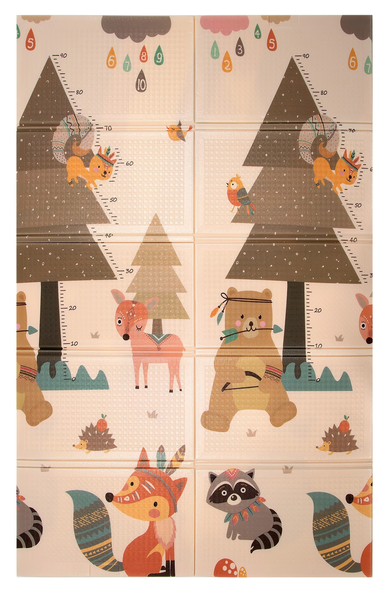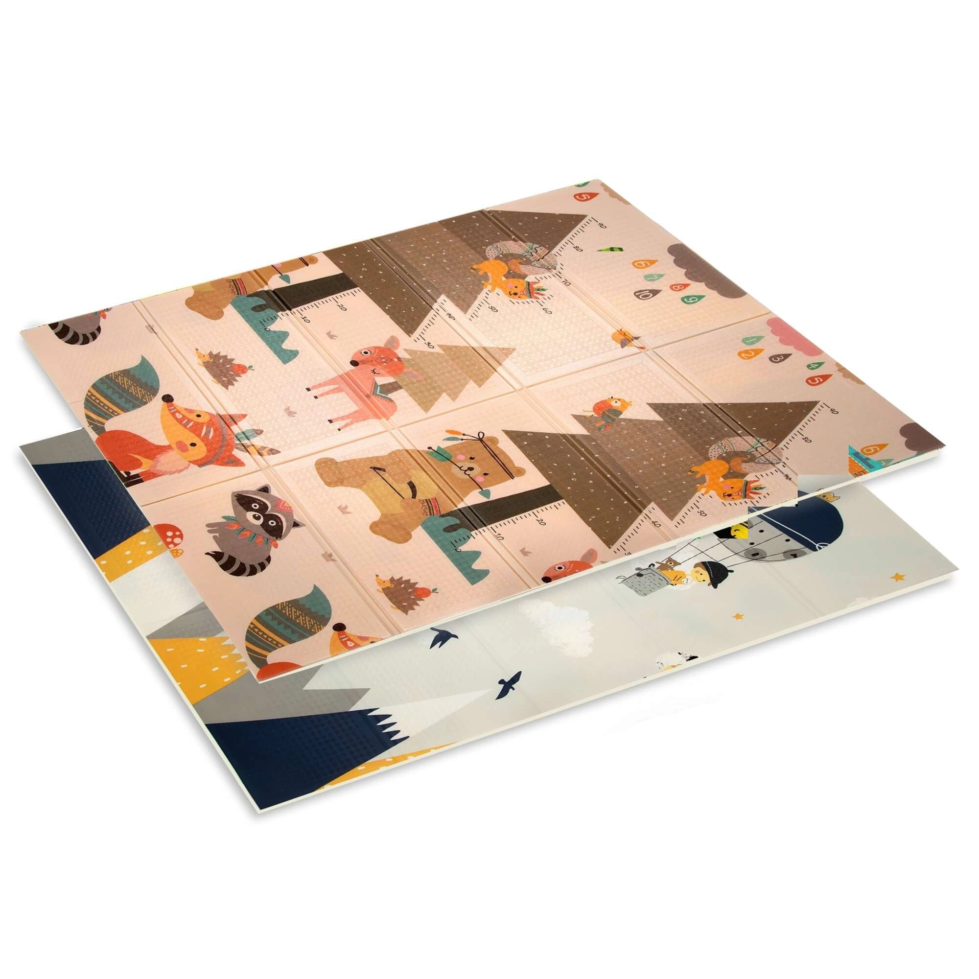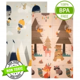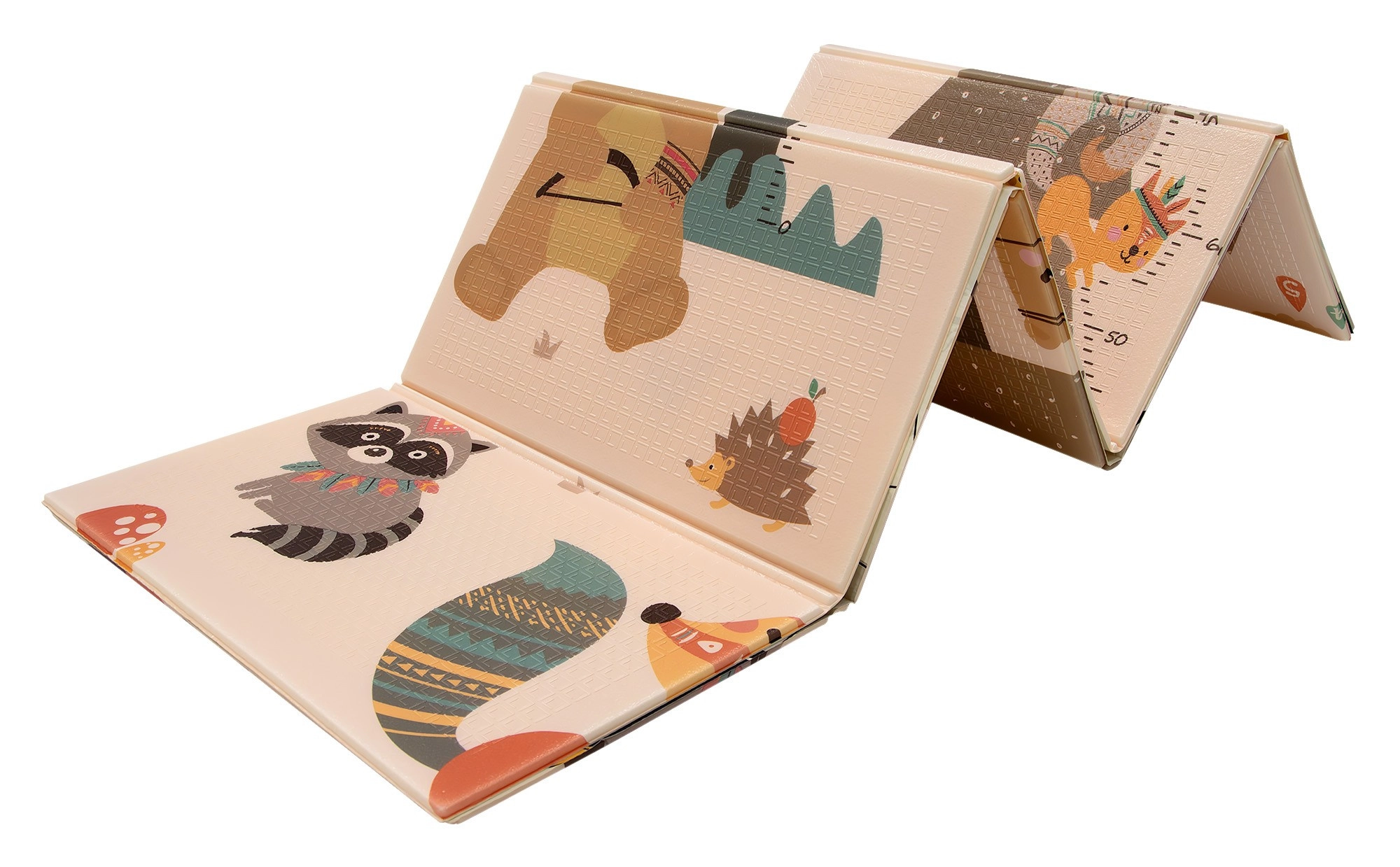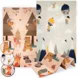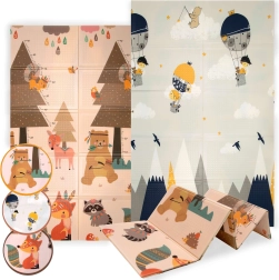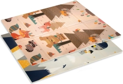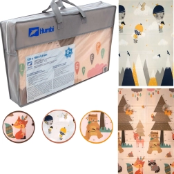 Mata HUMBI z premium pianki XPE oferuje świetną amortyzację, izolację od zimnej podłogi oraz antypoślizgową powierzchnię z delikatnym reliefem dla bezpiecznego raczkowania i pierwszych kroków. Jest dwustronna – po jednej stronie urocze leśne stworzenia, po drugiej motyw gór i przygody – dzięki czemu łatwo dopasujesz wygląd do wnętrza i nastroju dziecka.