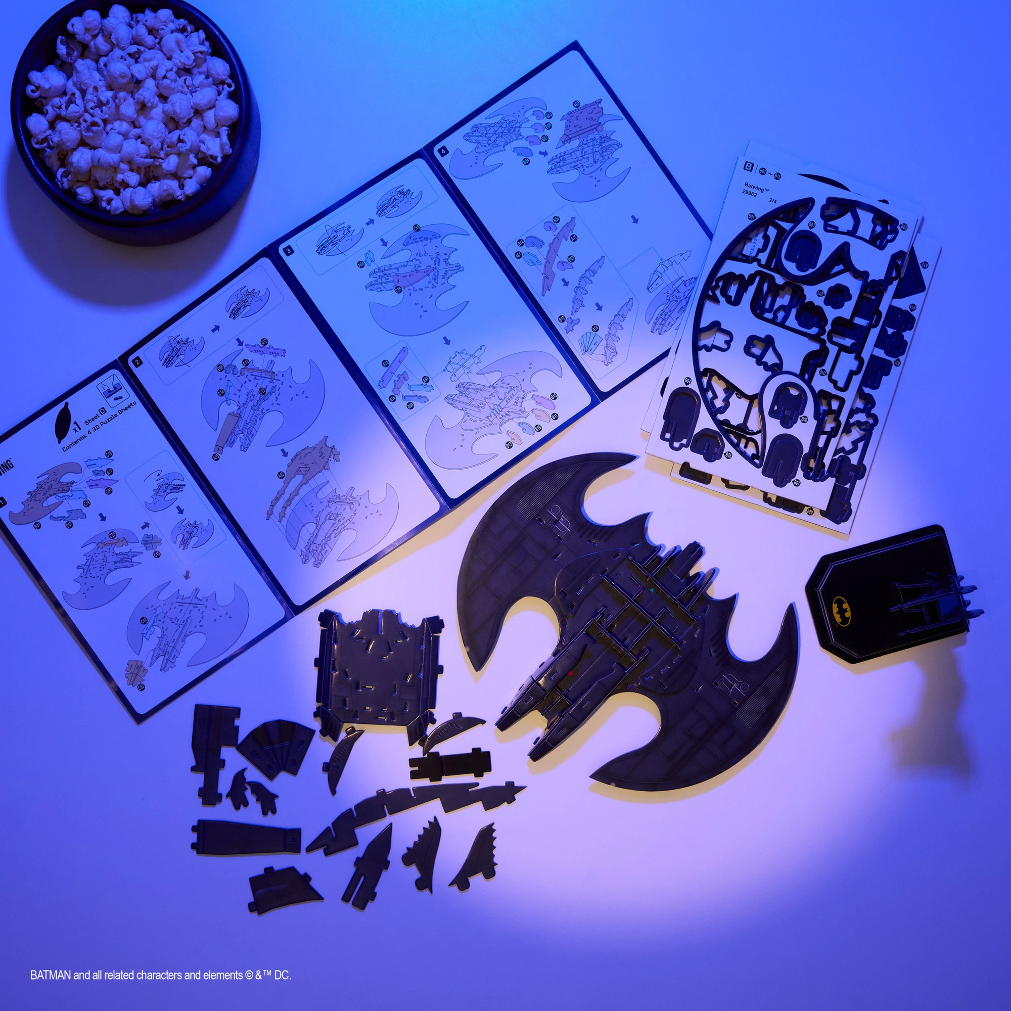 Autentyczne krzywizny, panele i sylwetka nietoperzych skrzydeł. Po złożeniu otrzymasz efektowny kolekcjonerski model na podstawce, który wyróżni się na biurku lub półce.
