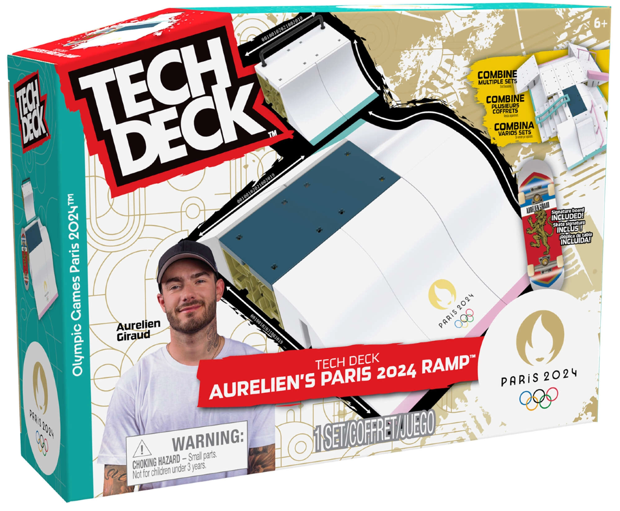 Poczuj atmosferę olimpijskiego skateboardingu z ekskluzywnym zestawem Tech Deck Aurelien Giraud Paris 2024. Wytrzymałe plastikowe elementy, ćwierć-łuki, grind rail i platformy umożliwiają płynne linie kombinacji, ollie, grindowanie i skoki – wszystko na dopracowanej mini desce.