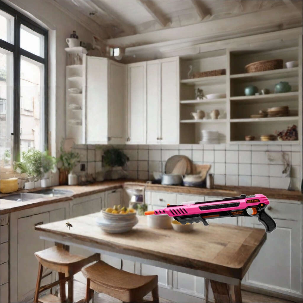 Stylowa sólowa strzelba na owady BUG-A-SALT 3.0 w różowo‑czarnym wydaniu pozwala eliminować muchy, komary i inne drobne owady za pomocą zwykłej soli kuchennej – bez chemii i bez baterii. Nowa generacja oferuje lżejszy i precyzyjniejszy strzał, ulepszony mechanizm spustowy, trwalszy magazynek na sól oraz mocniejszą sprężynę dla skutecznego trafienia.