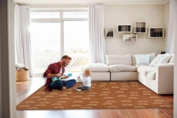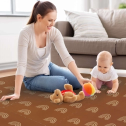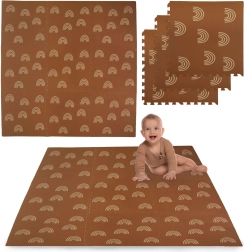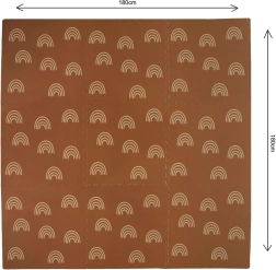 Mata piankowa HUMBI z motywem delikatnych tęczowych łuków w neutralnym brązowym kolorze pasuje do każdego wnętrza, a jednocześnie chroni dziecko i podłogę. Dzięki grubości 1 cm doskonale tłumi uderzenia i izoluje od chłodu, dlatego idealnie sprawdzi się na parkiet, kafelki i panele. Poszczególne elementy z zamkami typu puzzle łatwo połączysz w większą powierzchnię lub dopasujesz do węższych miejsc.