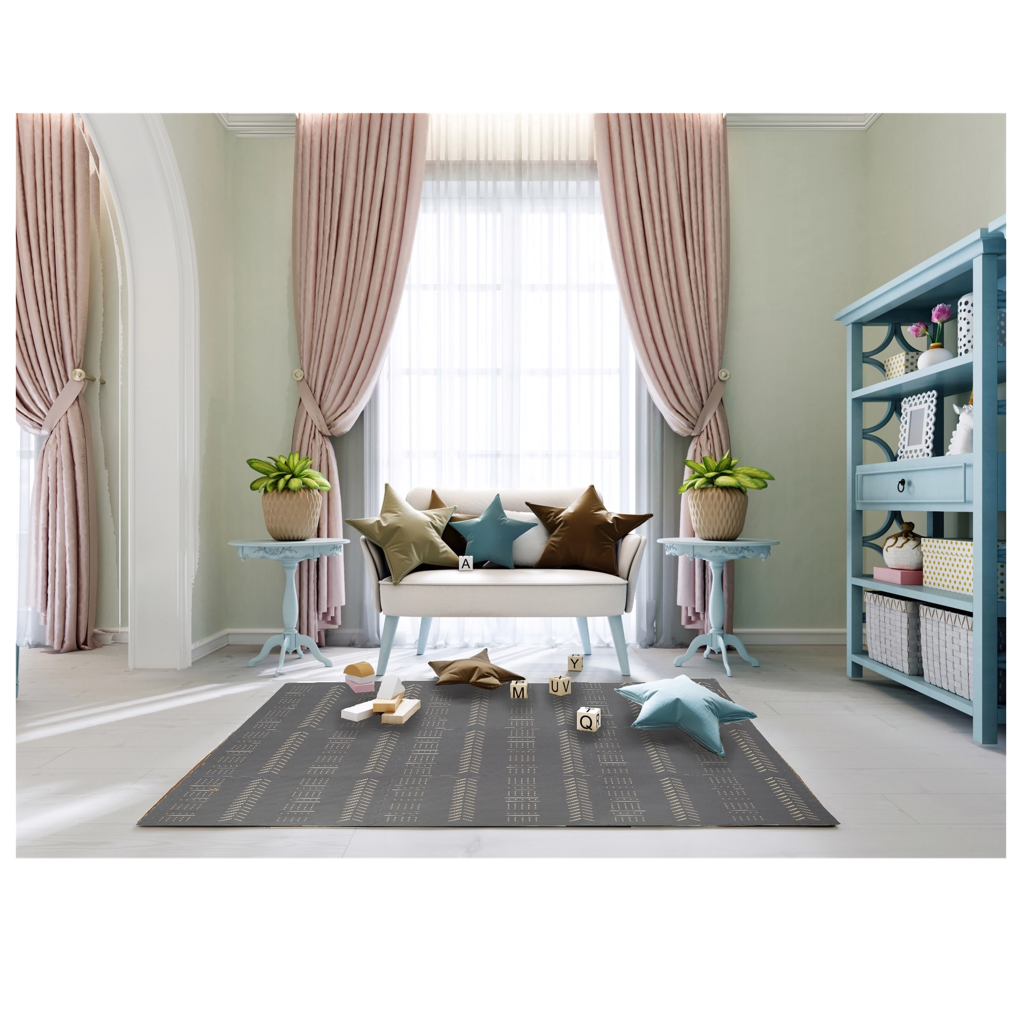 Wodoodporna pianka EVA łatwo się wyciera, pochłania hałas i idealnie sprawdza się w pokojach dziecięcych oraz salonach.