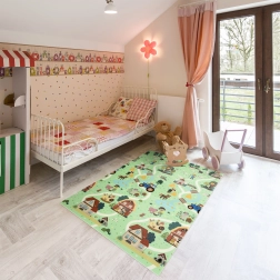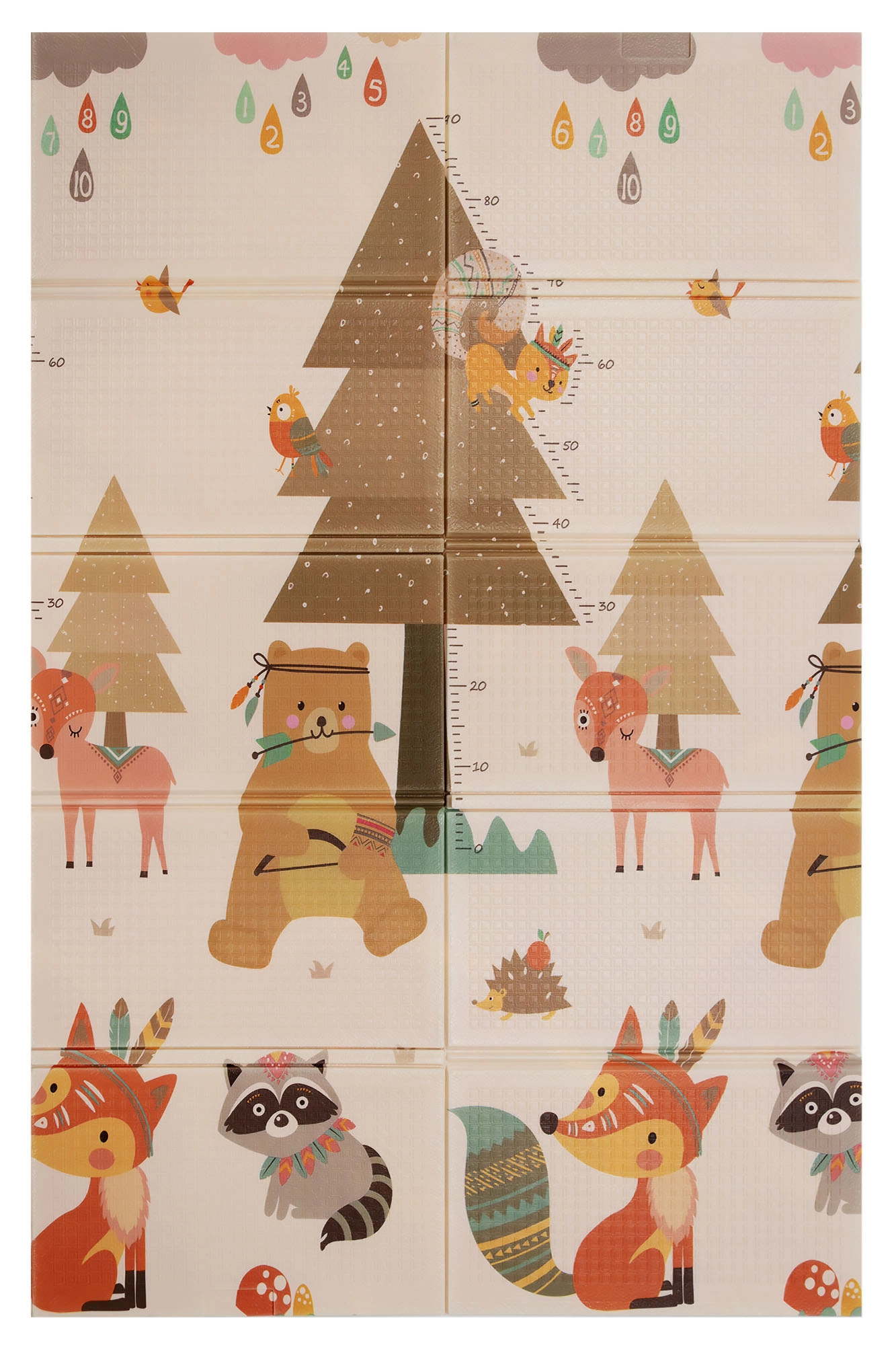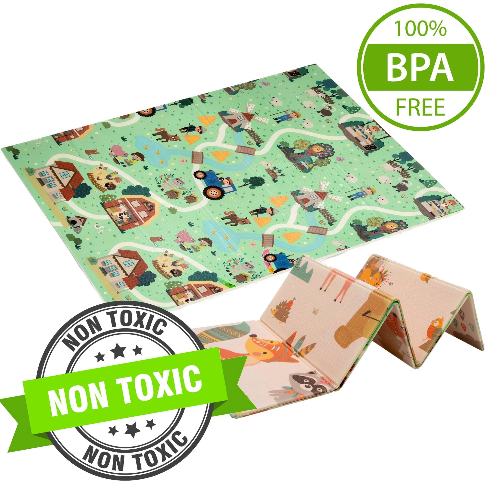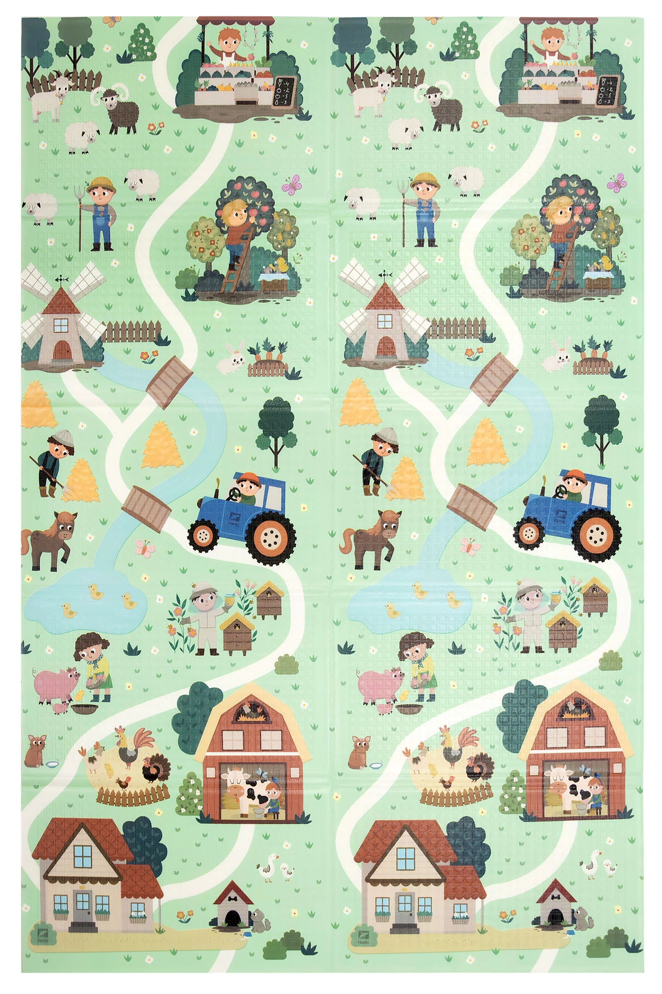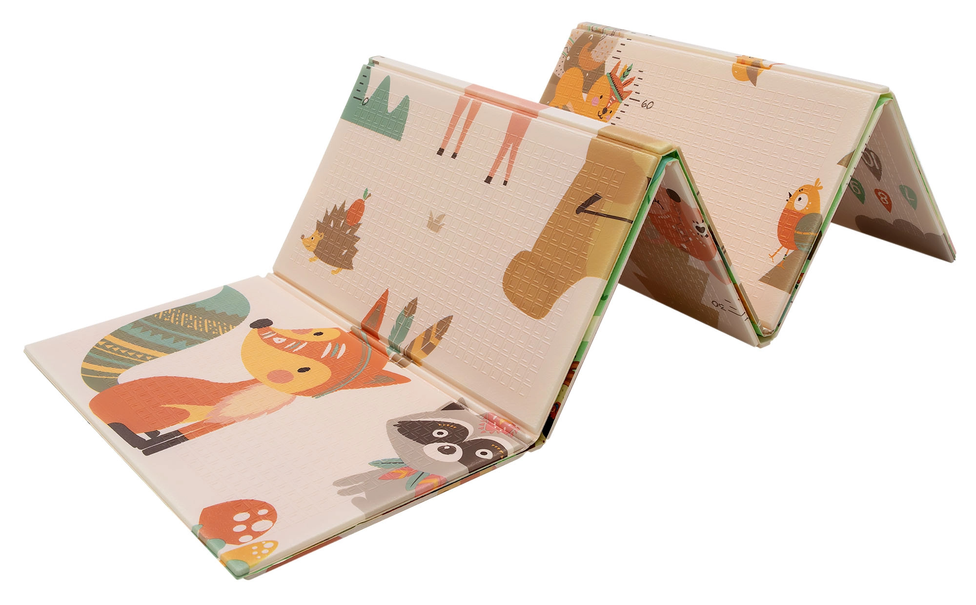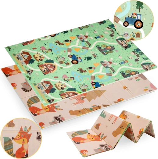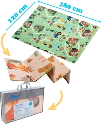 Jedna strona przedstawia leśne zwierzątka, druga miasteczko z drogami dla autek. Zmieniaj motywy w zależności od nastroju i wspieraj wyobraźnię oraz percepcję sensoryczną.
