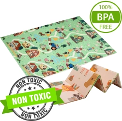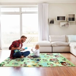 Premium pianka XPE jest bezzapachowa, nietoksyczna i trwała. Dzięki grubości 0,8 cm świetnie izoluje od chłodu i zapewnia komfortowe wyściełanie podczas raczkowania i pierwszych kroków. Dwustronny nadruk wspiera rozwój sensoryczny i zachęca do kreatywnej zabawy autkami po drogach oraz do poznawania zwierzątek.