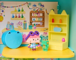 W opakowaniu znajdują się elementy rozwijające wyobraźnię i małą motorykę. Zestaw jest kompatybilny z Dużym Domkiem Gabi, dzięki czemu łatwo włączysz go do większej kolekcji. Świetny wybór dla dzieci od 3 lat, które kochają kolorowe postacie i świat kocich przyjaciół.