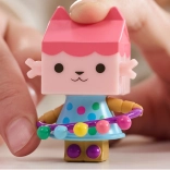- Figurka Tekturko, niebieskie kocie pudełko, żółta półeczka, mała figurka kociego robota, niespodzianka
