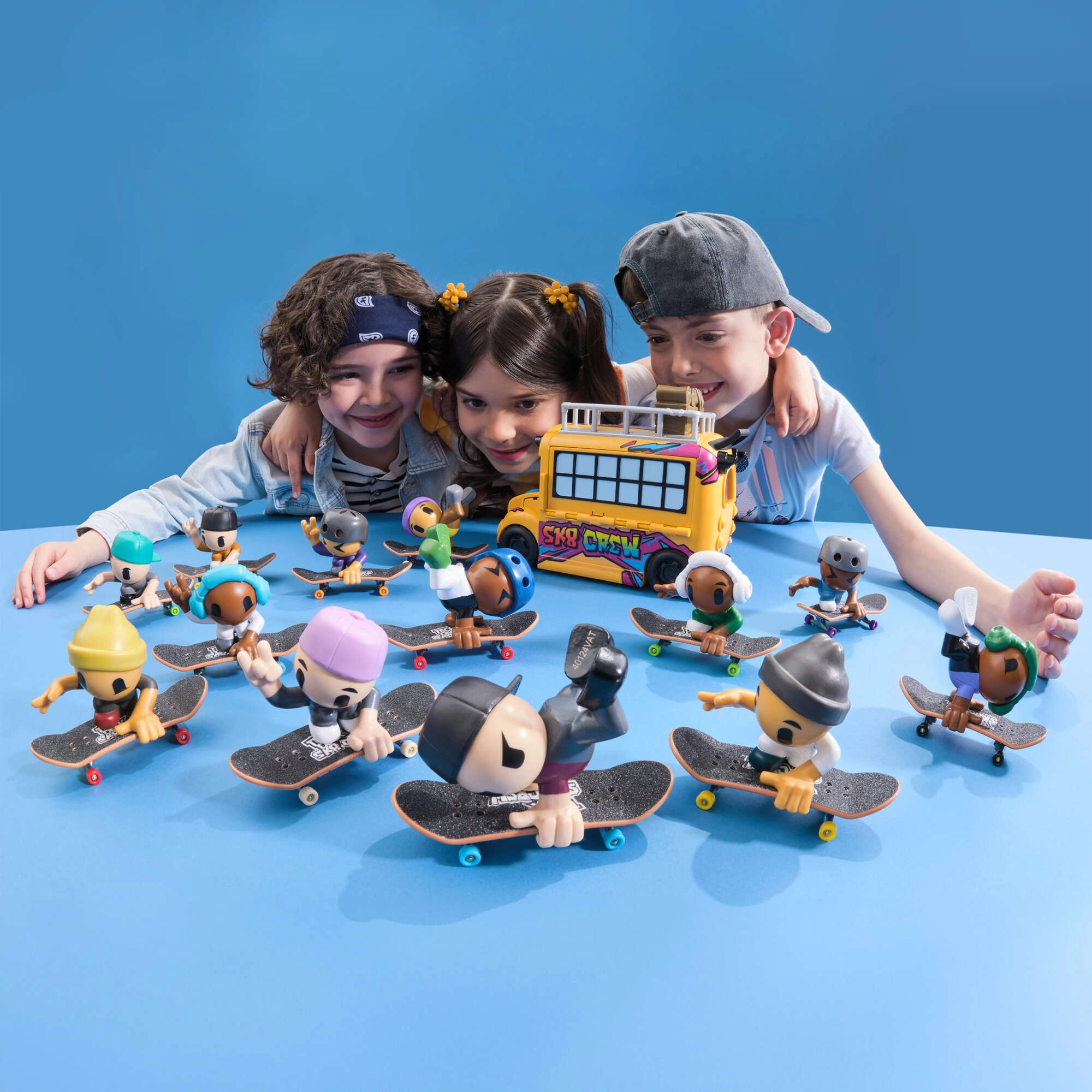 Zestaw Tech Deck Sk8 Crew seria 1 to podwójna dawka zabawy: 2 w pełni funkcjonalne fingerboardy oraz 2 figurki riderów, które można przymocować do desek i trenować prawidłową technikę. Autentyczne wykonanie z mini truckami, gripem i kółkami gwarantuje realistyczne wrażenia z jazdy i precyzyjne wykonywanie trików na biurku i w domu.