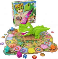 Pomóż głodnym jaskiniowcom zbierać pyszne przekąski i unikaj złośliwego jęzora dinozaura w grze SNACK‑O‑SAURUS REX marki Spin Master. Proste zasady, szybka i dynamiczna rozgrywka, zabawa dla dzieci od 5 lat i całej rodziny. Celem jest zebranie dwóch par przekąsek, ale uważaj – dinozaur może odesłać cię z powrotem lub zabrać zdobycz!