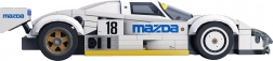 Wierne detale legendarnej MAZDA 787B w białym kolorze z niebiesko–żółtymi naklejkami i wyrazistym tylnym skrzydłem zachwycą każdego fana motorsportu.