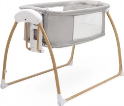 Wielofunkcyjne łóżeczko dziecięce 3 w 1 marki New Baby służy jako łóżeczko, kołyska i kojec. Oferuje łatwe przemieszczanie dzięki kółkom, opuszczany bok dla szybkiego dostępu do maluszka oraz oddychające, siateczkowe boki dla lepszej cyrkulacji powietrza i stałej kontroli. W zestawie znajduje się moskitiera, zawieszane zabawki, przyjemne melodie i odgłosy natury, a także inteligentne funkcje jak timer i detekcja ruchu z automatycznym kołysaniem.