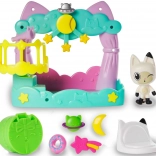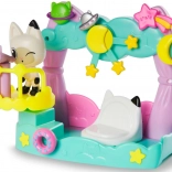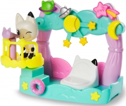 Odkryj magię świata Gabi z balkonem Pandy Paws! Ten kolorowy zestaw z gwiazdami i księżycem oferuje idealną scenę do wyobrażeniowej zabawy i odtwarzania momentów z GABBY’S DOLLHOUSE. W zestawie znajduje się ruchoma figurka Pandy Paws, siedzisko, akcesoria oraz scena balkonowa do eksponowania i pozowania.