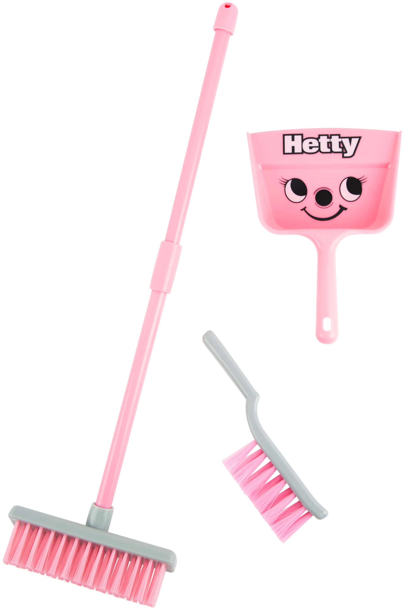 Podaruj dzieciom radość z pomagania w domu z różowym zestawem do sprzątania Hetty. Trzy lekkie i wytrzymałe akcesoria z tworzywa – długa miotła, kompaktowa zmiotka i ergonomiczna szufelka z charakterystycznym uśmiechem Hetty – zostały zaprojektowane z myślą o małych dłoniach i bezpiecznej codziennej zabawie.