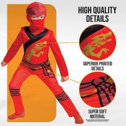 Oryginalny kostium inspirowany popularnym serialem NINJAGO i zabawkami LEGO ucieszy wszystkich miłośników pełnych akcji przygód. Dzięki dopracowanym detalom i wygodnemu krojowi dzieci łatwo wcielą się w rolę odważnego Kaia.