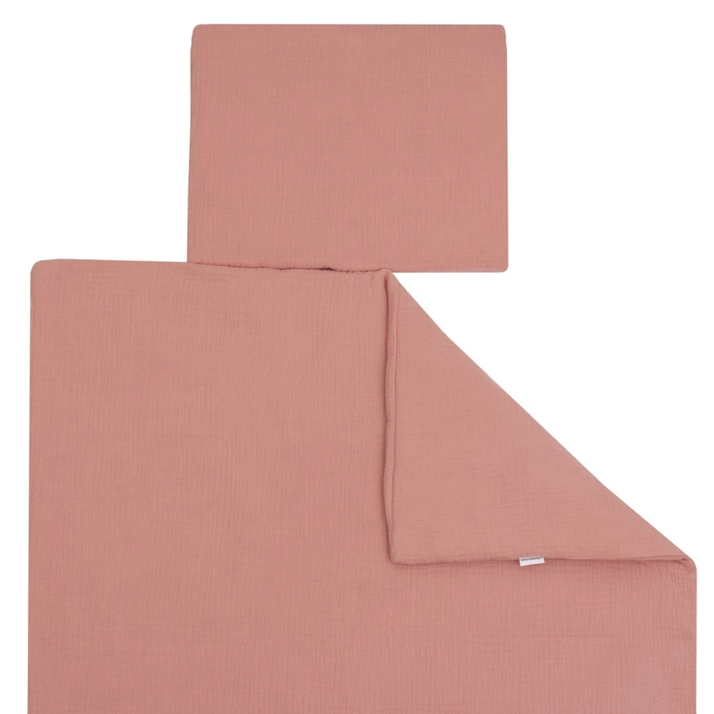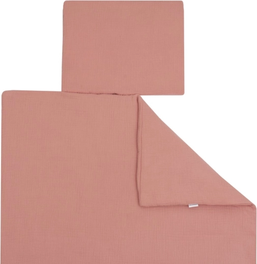 Odkryj komfort muślinu – jednej z najczystszych i najdelikatniejszych tkanin na świecie. Dzięki swojej lekkiej i przewiewnej strukturze muślin doskonale oddycha, wspiera cyrkulację powietrza i pomaga zminimalizować ryzyko przegrzania. Zestaw uszyto z wysokiej jakości muślinu i wypełniono antyalergicznym poliestrowym włóknem, dzięki czemu jest łagodny dla wrażliwej skóry dziecka już od pierwszych dni życia.