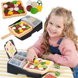 Zintegrowana podstawa z oddzielnymi pojemnikami utrzymuje wszystkie dodatki w zasięgu ręki. Dzieci łatwo wybierają składniki i układają pizzę według przepisów lub własnego gustu.