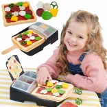 Korpus podzielony jest na 4 części dla prostego porcjowania i zabawy w serwowanie. Solidne, kolorowe dodatki dobrze leżą w dziecięcych dłoniach i wspierają motorykę małą.