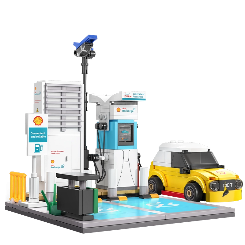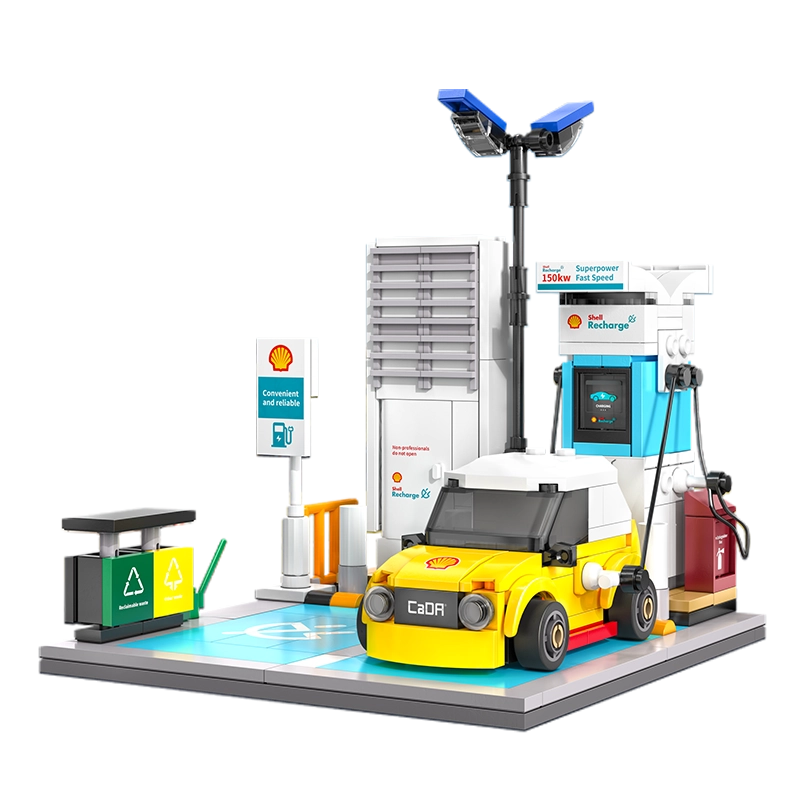 Zbuduj własną stację ładowania SHELL z kompaktowym żółtym autem z wysokiej jakości klocków CaDA. Z 308 elementów stworzysz realistyczną scenę z kablem ładowania, oznaczeniem miejsca parkingowego oraz detalicznymi akcesoriami jak kosz czy lampy – idealną do kreatywnej zabawy i jako stylowa dekoracja.