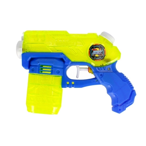 Ten kolorowy pistolet na wodę wyróżnia się przezroczystym korpusem, ergonomiczną rękojeścią i niezawodnym spustem. Dzięki kompaktowym wymiarom 17 × 12 × 4 cm dzieci łatwo go chwytają i obsługują. Możesz wybrać spośród dwóch stylowych wariantów z niebiesko-białymi oraz neonowo żółtymi elementami.