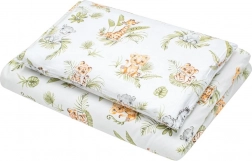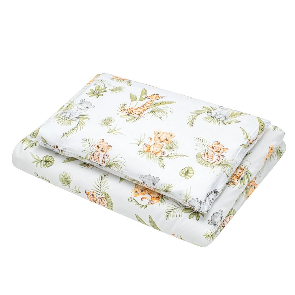 Zapewnij swojemu maluszkowi komfort i bezpieczeństwo z 3‑częściowym zestawem do łóżeczka NEW BABY Jungle. Pościel uszyta jest w 100% z naturalnej bawełny, która jest miękka w dotyku, oddychająca i delikatna dla wrażliwej dziecięcej skóry. Projekt w kojących barwach z motywem dżungli tworzy przyjemne otoczenie do snu i odpoczynku.