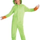 Duże haftowane oczy, listkowy grzebień i uszka na kapturze nadają kostiumowi urok prawdziwego Grookey i zachwycą każdego fana POKEMON.
