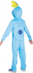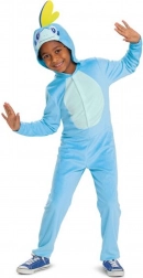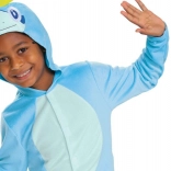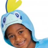 Ten licencjonowany kostium POKEMON Sobble to idealny wybór na karnawał, dziecięce przyjęcia, Halloween oraz domowe psoty. Mięciutki materiał typu fleece grzeje i nie drapie, a kaptur z oczami i żółtą grzbietową płetewką nadaje przebierance wierny wygląd wodnego Pokémona.