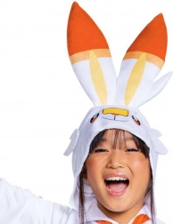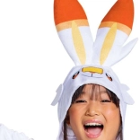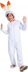 Ten biały jednoczęściowy kombinezon z kapturem inspirowany jest postacią Scorbunny ze świata POKEMON. Dzięki miękkiemu poliesterowi, praktycznemu przedniemu zapięciu oraz detalom, takim jak długie uszy i ogonek, kostium idealnie sprawdzi się na karnawał, szkolne występy i codzienne przebieranki w domu.