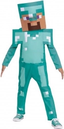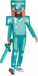W zestawie znajduje się pudełkowy hełm/maska, który dopełnia wygląd postaci Steve’a. Kombinezon z długim rękawem i nogawkami ma watowane panele na ramionach oraz efektowne pikselowe detale dla maksymalnego efektu na każdej imprezie.
